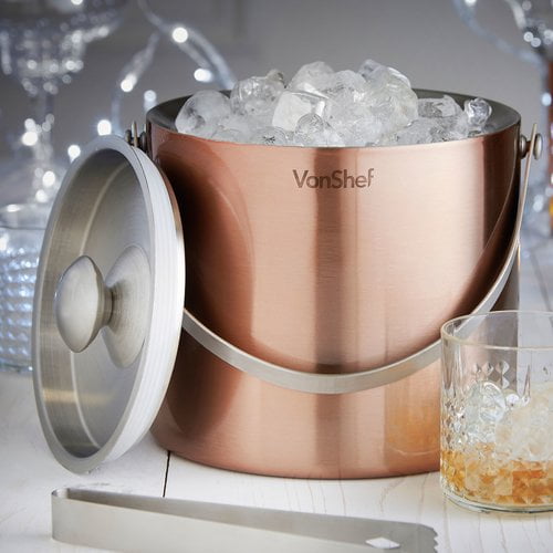 Stainless steel ice bucket insulated double walled cooler with lid for ice cubes. Maroxx double insulated luxury ice bucket. It gives it a more modern look. This bucket is insulated and double walled to prevent the ice from melting. Oggi double wall ice bucket with flip lid has a rather interesting design.